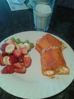 Stuffed shells + fruit + milk! I later had a cupcake, too.